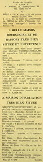 Advertentie : Etude du notaire J. Lahaye. Vente publique. 1 : Belle maison bourgeoise et de rapport. Koninginnelaan 33. 2 : Maison d'habitation. Nieuwpoortsteenweg 42