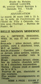 Advertentie : Etude du notaire J. Lahaye. Vente publique. Belle maison moderne. Bredeneweg 30