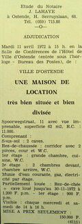 Advertentie : Etude du notaire J. Lahaye. Vente publique. Une maison de location. Spoorwegstraat 11