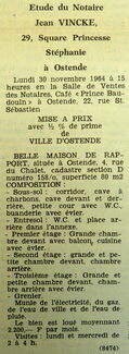 Advertentie : Etude du notaire Jean Vincke. Vente publique. Maison de rapport. 4, rue du Chalet, Ostende