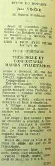 Advertentie : Etude du notaire Jean Vincke. Vente publique. Très belle et confortable maison d'habitation. 27, rue des Deniers, Ostende