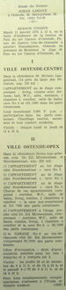 Advertentie : Etude du notaire Johan Lahaye. Vente publique. 1 : Appartement au 4e étage dans la Résidence "St. Michel". Langestraat 114. 2 : 4 appartements et un garage dans la Résidence "Nova". Coin Dr. Ed Moreauxlaan et Noordzeestraat