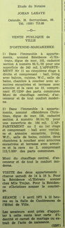 Advertentie : Etude du notaire Johan Lahaye. Vente publique. 1 : Appartement nr.11. Résidence "L'Estran". Digue de Mer 102. 2 : Appartement nr.2. Résidence "Christine". Digue de Mer 128.