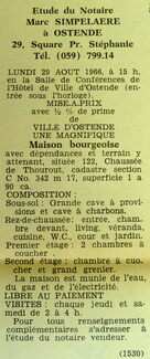Advertentie : Etude du notaire Marc Simpelaere. Vente publique. Maison bourgeoise. 122, Chaussée de Thourout