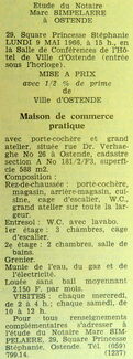 Advertentie : Etude du notaire Marc Simpelaere. Vente publique. Maison de commerce pratique. Rue Dr. Verhaeghe 26, Ostende