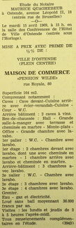 Advertentie : Etude du notaire Maurice Quaghebeur. Vente publique. Maison de commerce. Pension Wilde. Rue Royale 80