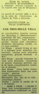 Advertentie : Etude du notaire Maurice Quaghebeur. Vente publique. Une tres belle villa. Meeuwenlaan 2