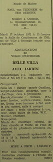 Advertentie : Etude du notaire P. van Tieghem de Ten Berghe. Vente publique. Belle villa avec jardin. Elisabethlaan 171