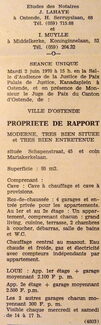 Advertentie : Etudes des notaires J. Lahaye et I. Muylle. Vente publique. Propriété de rapport. Schapenstraat 45