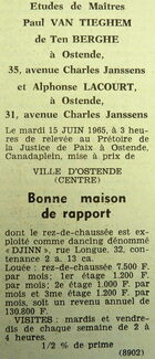 De benedenverdieping werd uitgebaat als dancing "Djinn" en het gebouw had ook 3 verdiepingen die als appartementen werden verhuurd.