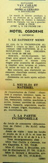 Advertentie : Etudes des notaires Van Caillie, Ooms et Gerard. Vente publique. Hotel Osborne.