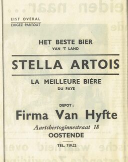 Advertentie : Firma Van Hyfte. Depot Stella Artois. Aartshertoginnestraat 18 Oostende