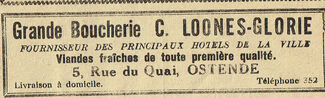 Advertentie : Grande Boucherie C. Loones-Glorie. 5, Rue du Quai, Ostende