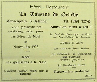 Advertentie : Hôtel - Restaurant La Taverne de Genève. Monacoplein 3, Oostende