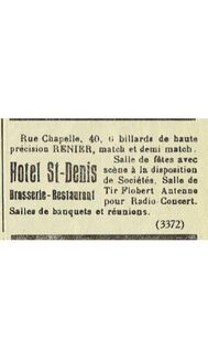 Advertentie : Hotel St-Denis. Rue Chapelle 40
