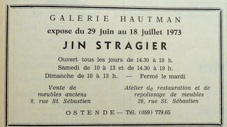 Advertentie : Jin Stragier. Galerie Hautman. 29 juni - 18 juli 1973