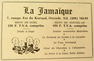Advertentie : La Jamaïque. 7, Rampe Est du Kursaal, Ostende