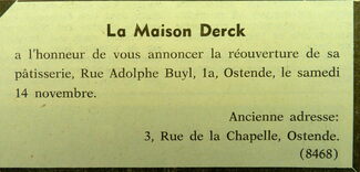 Advertentie : La Maison Derck. Rue Adolphe Buyl 1a, Ostende