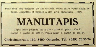 Advertentie : Manutapis. Christinastraat 110, Oostende