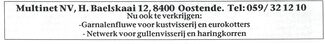 Advertentie : Multinet nv, H. Baelskaai 12, 8400 Oostende, tel 059 / 32 12 10. - Nu ook te verkrijgen : Garnalenfluwe voor kustvisserij en eurokotters. - Netwerk voor gullenvisserij en haringkorren