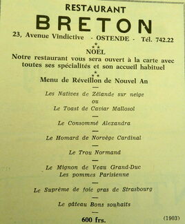 Advertentie : Restaurant Breton. 23, Avenue Vindictive, Ostende