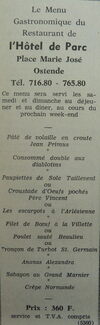 Advertentie : Restaurant de l'Hôtel de Parc. Place Marie José, Ostende