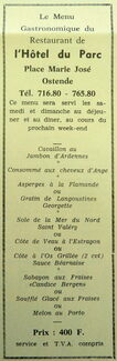 Advertentie : Restaurant de l'Hôtel du Parc. Place Marie José, Ostende