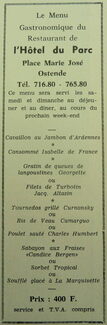 Advertentie : Restaurant de l'Hôtel du Parc. Place Marie José, Ostende