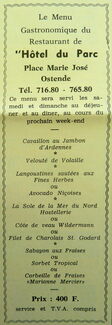 Advertentie : Restaurant de l'Hôtel du Parc. Place Marie José, Ostende