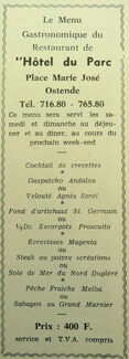 Advertentie : Restaurant de l'Hôtel du Parc. Place Marie José, Ostende
