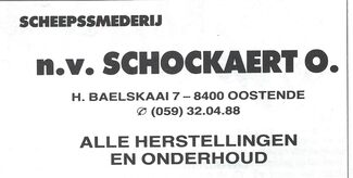 Advertentie : Scheepssmederij nv Schockaert O. - H. Baelskaai 7, 8400 Oostende, tel 059 / 32 04 88. - Alle herstellingen en onderhoud