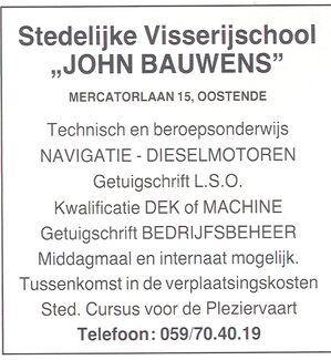 Advertentie : Stedelijke Visserijschool "John Bauwens", Mercatorlaan 15, Oostende