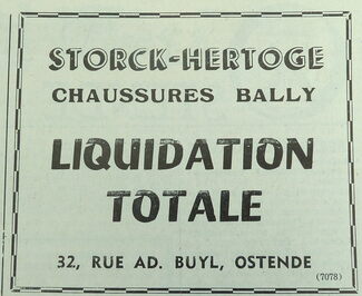 Advertentie : Storck-Hertoge. Liquidation totale. Adolf Buylstraat 32, Oostende