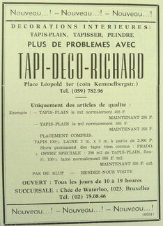 Advertentie : Tapi-Deco-Richard. Place Léopold 1er (coin Kemmelbergstraat)