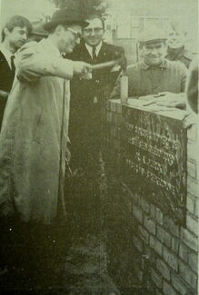 Foto : Eerste steenlegging door minister Vranckx van de vezelplatenfabriek "Ostend Board".