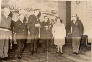 Foto : Burgemeester Jan Piers ontvangt op het stadhuis de commandant van het zeilschip-schoolschip "Juan Sebastian de Elcano", de heer D. Augustin Rosety Caro