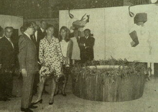 Foto : Prinses Paola in gezelschap van Frank Edebau, conservator van het Museum voor Schone Kunsten, en Raymond Miroir, schepen.