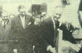 Foto : De eerste steenlegging. We herkennen o.a. Burgemeester Jan Piers en de heer Stuhlmeyer van de firma Immosol. (Photo Roger)