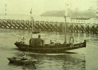 Foto : Koning Boudewijn en koningin Fabiola op het achterdek van de O.1 "Fabiola" in de havengeul van Oostende (08/07/1963)