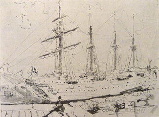 Source URL: https://www.deplate.be/tekening-het-zeilschip-schoolschip-juan-sebastian-de-elcano-door-jean-jacques-gailliard