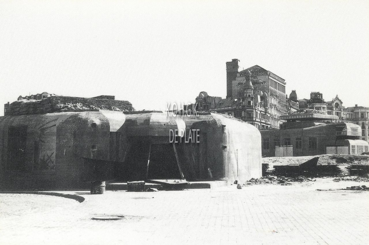 Tropic T 339. - Postkaart t.v.v. de cover van "De Plate". - Na de afbraak van de derde kursaal bouwde de Duitse bezetter op die plaats bunkers als kustverdediging.