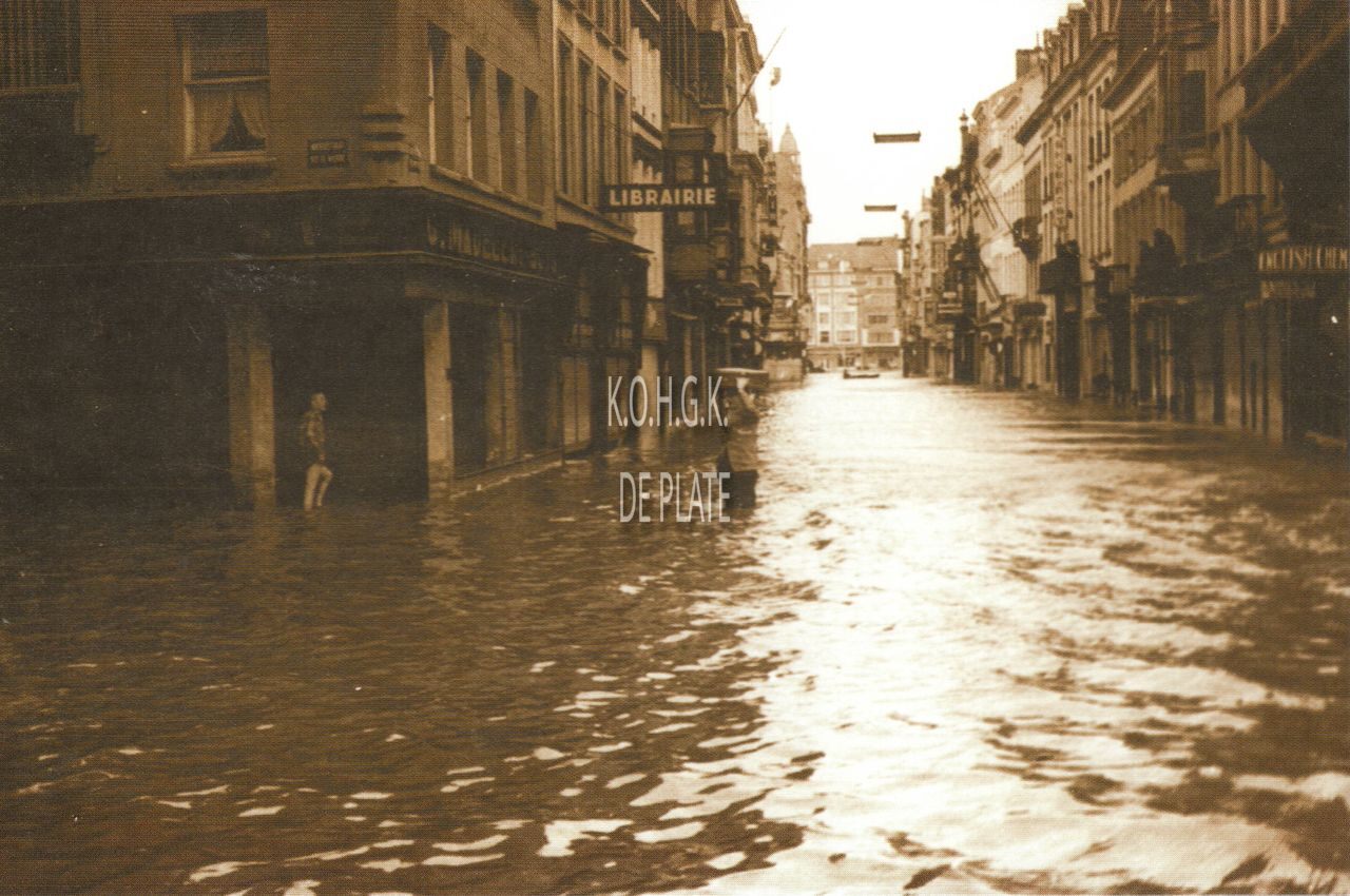 Tropic T 397. - Ostende oender woater 1953. - De Adolf Buylstraat richting het Wapenplein. Op de hoek met de Madridstraat, de handelszaak van G. Madelein-Buys, bandagist en ernaast boekhandel Corman.