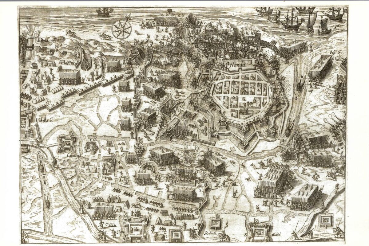 Tropic T 435. Beleg van Oostende 1601-1604. - Kopergravure (31 x 22.2 cm.) uit Orlers, "Nassausche Lauwercrans", Amsterdam, 1610.