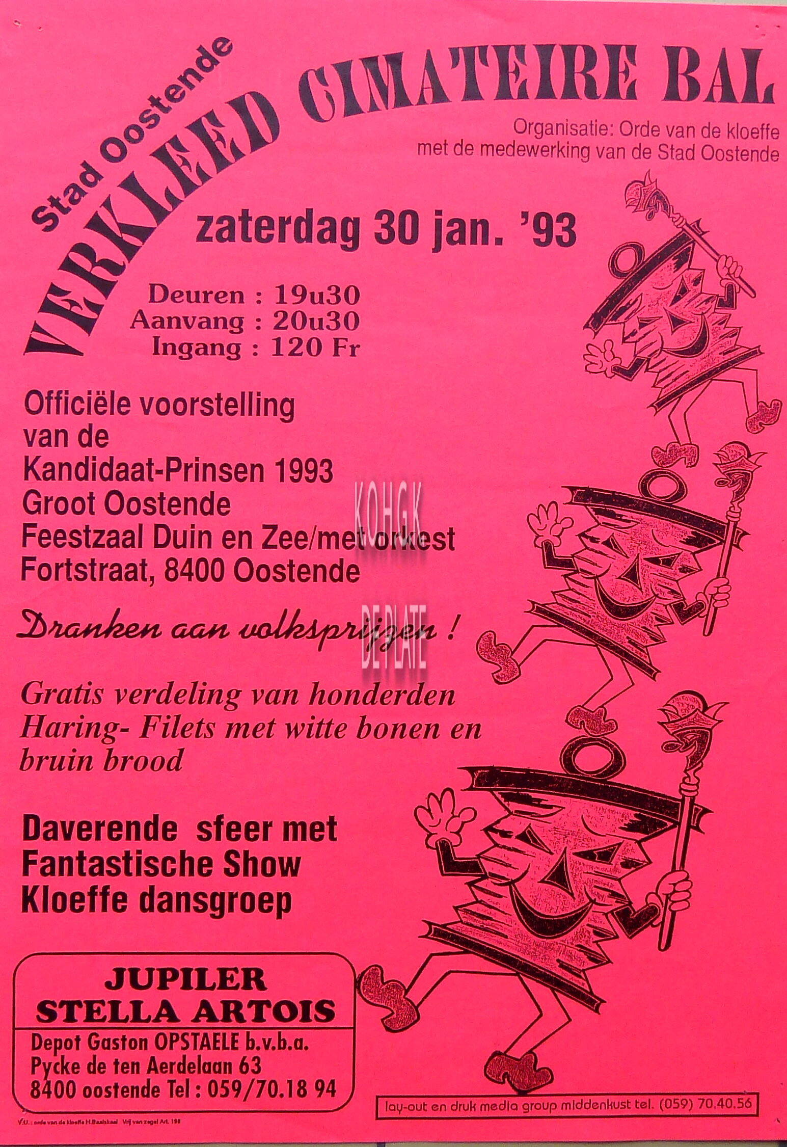Formaat : 42 x 30 cm. - Met de medewerking van de Stad Oostende. Officiële voorstelling van de kandidaat- Prinsen 1993. Met Kloeffe dansgroep.