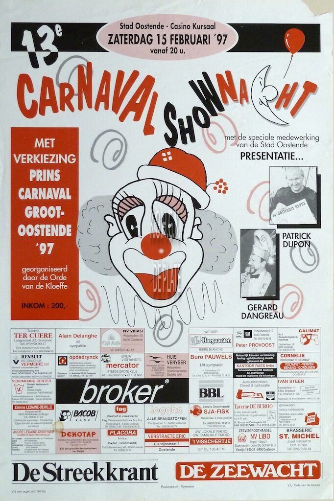 Formaat : 60 x 40 cm. Presentatie Patrick Dupon, Gerard Dangreau. Met verkiezing Prins Carnaval Groot Oostende '97.