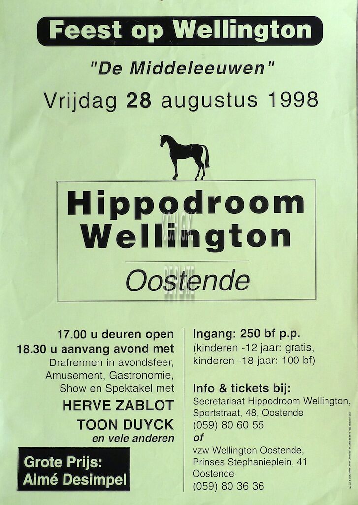 Formaat : 60 x 42 cm. "De Middeleeuwen". Drafrennen in avondsfeer, Amusement, Gastronomie, Show en Spektakel met HERVE ZABLOT TOON DUYCK en vele anderen.