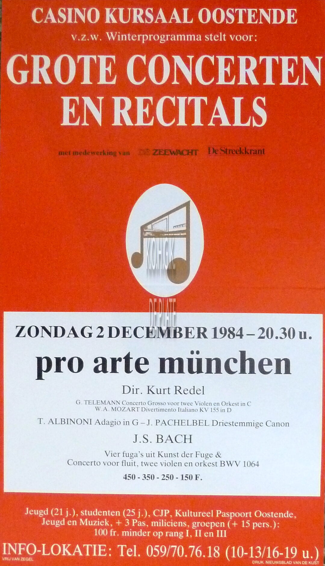 Formaat : 51 x 29 cm. - vzw Winterprogramma stelt voor. Dirigent : Kurt Redel. Werk van : G. Telemann, W.A. Mozart, T. Albinoni, J. Pachelbel, J.S. Bach