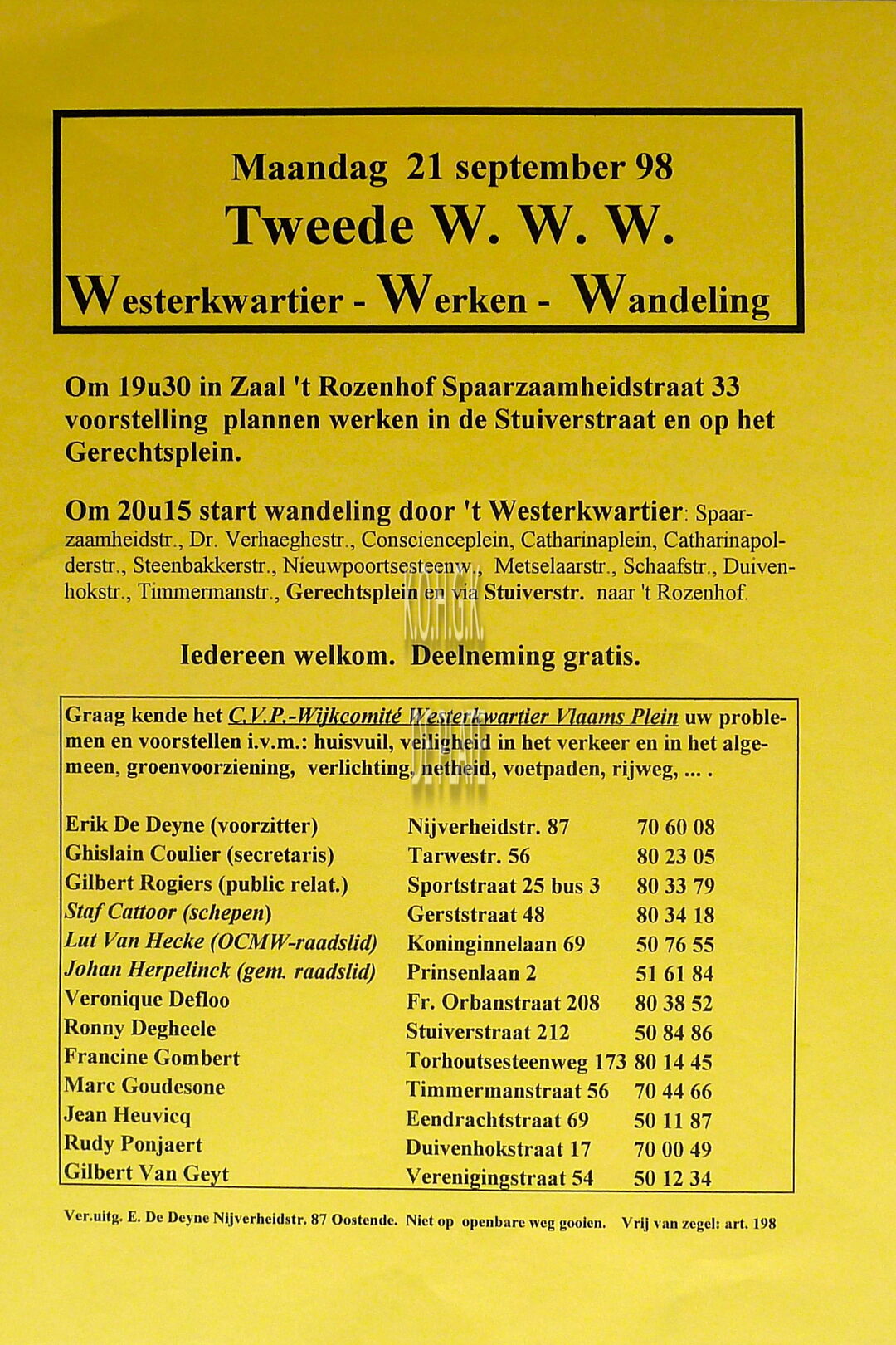 Formaat : 42 x 30 cm. - Zaal 't Rozenhof Spaarzaamheidstraat 33, voorstelling plannen werken in de Stuiverstraat en op het Gerechtsplein. Wandeling door 't Westerkwartier