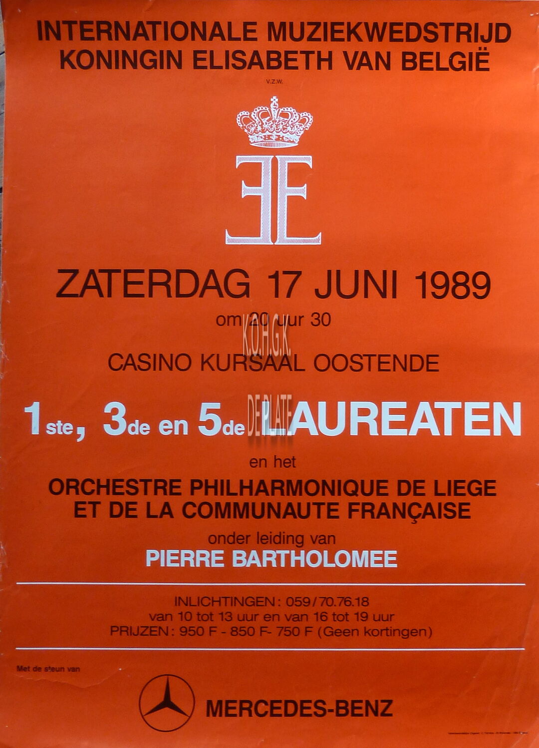 Formaat : 58 x 42 cm. - Georganiseerd door de v.z.w. Internationale Muziekwedstrijd Koningin Elisabeth van België. - o.l.v. Pierre Bartholomee