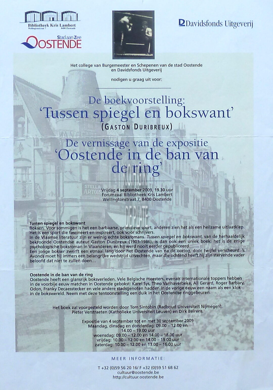 Formaat : 30 x 21 cm. - De boekvoorstelling : "Tussen spiegel en bokswant" (Gaston Duribreux). Het college van Burgemeester en Schepenen van de stad Oostende en Davidsfonds Uitgeverij.